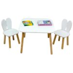 Детска дървена маса с 2 Столчета BUNNY / комплект за учене