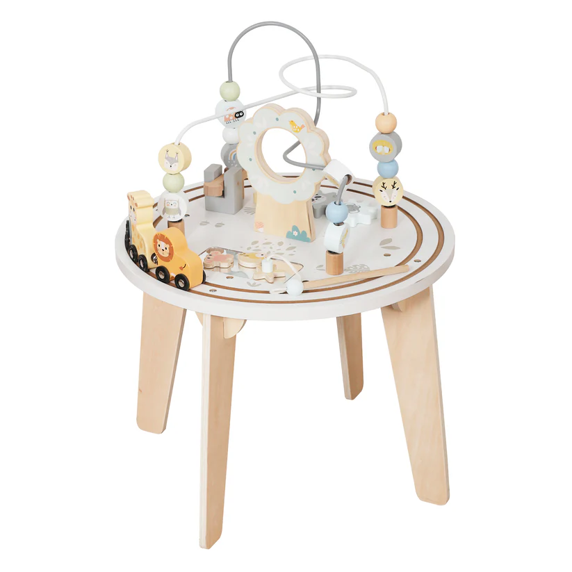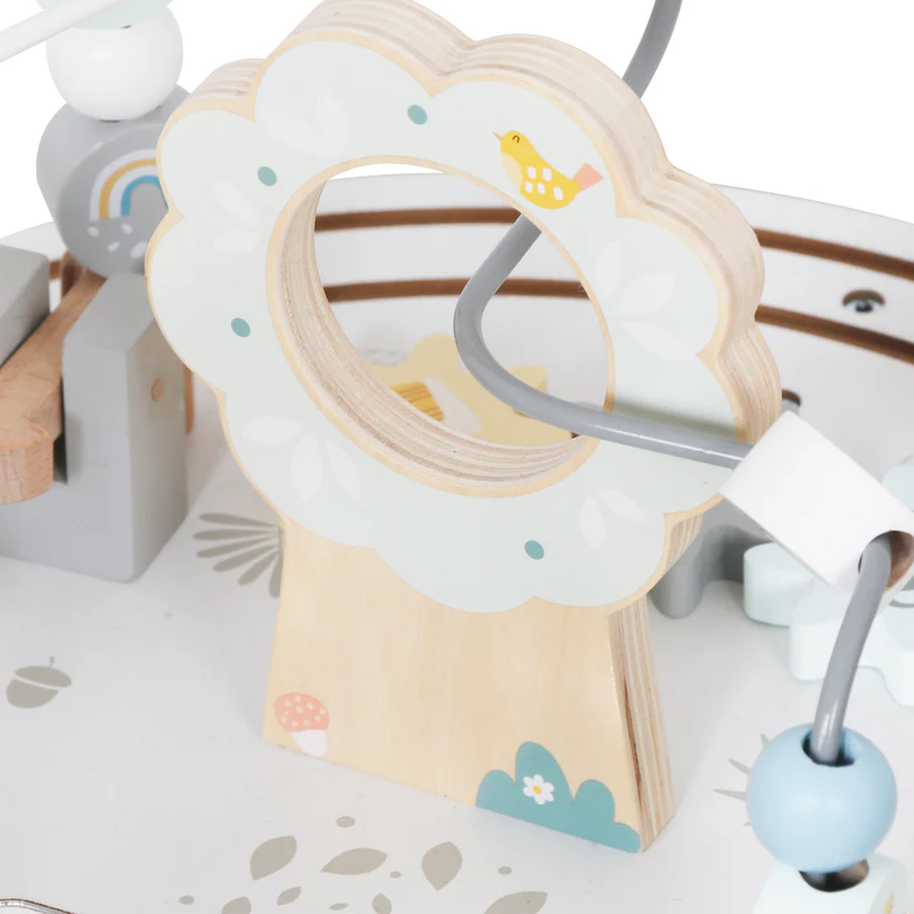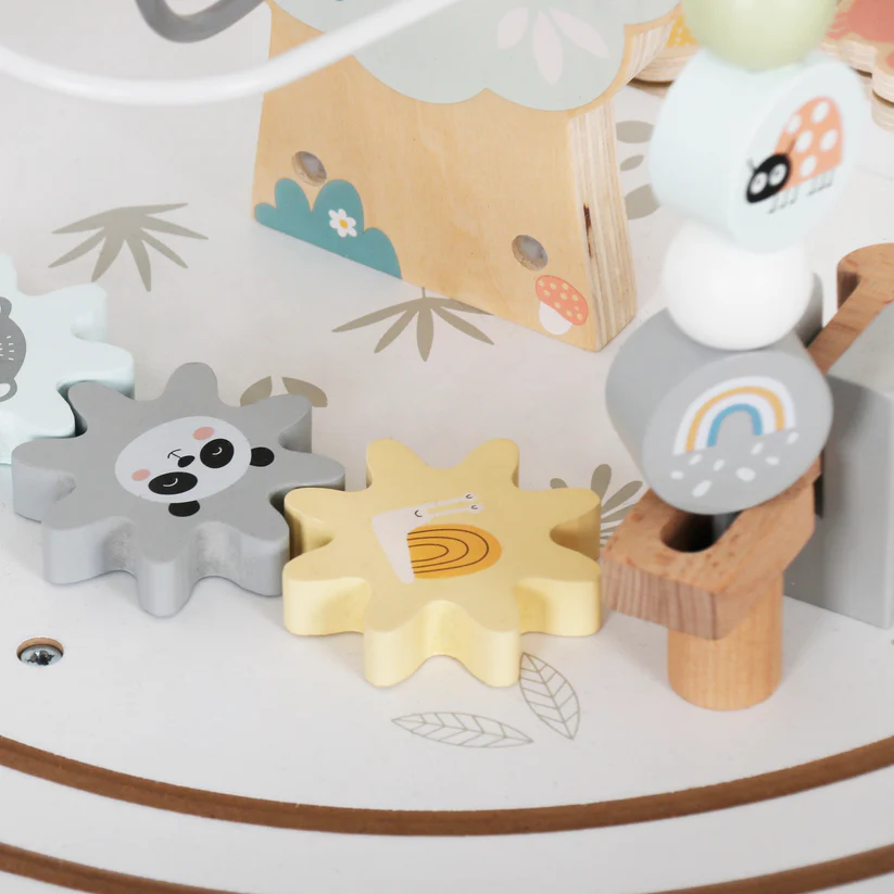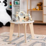 Детска дървена образователна маса с лабиринт и мъниста GINGER HOME – идеална образователна играчка за малки откриватели! Комбинираща моторика, логическо мислене и забавление, тази детска дървена образователна маса с лабиринт и мъниста с вградени активности е създадена, за да развива фината моторика и координацията око-ръка при деца над 1 година.