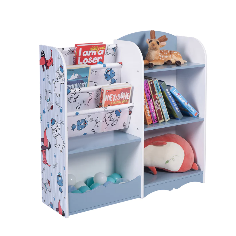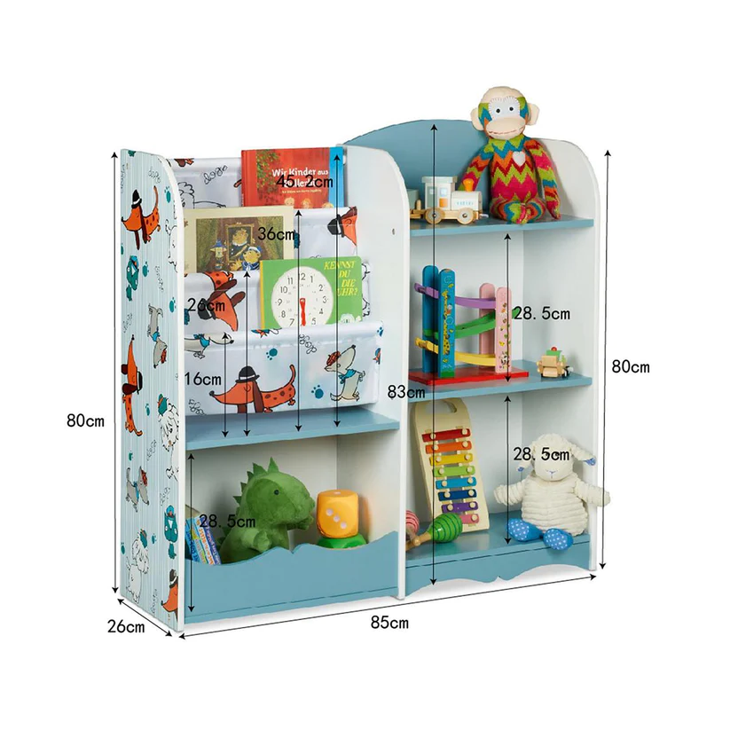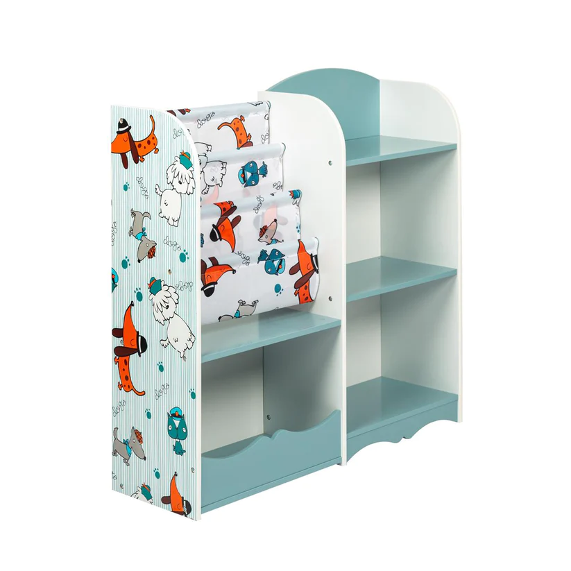 Детски дървен органайзер, етажерка с рафтове за играчки и книжки – DOGS