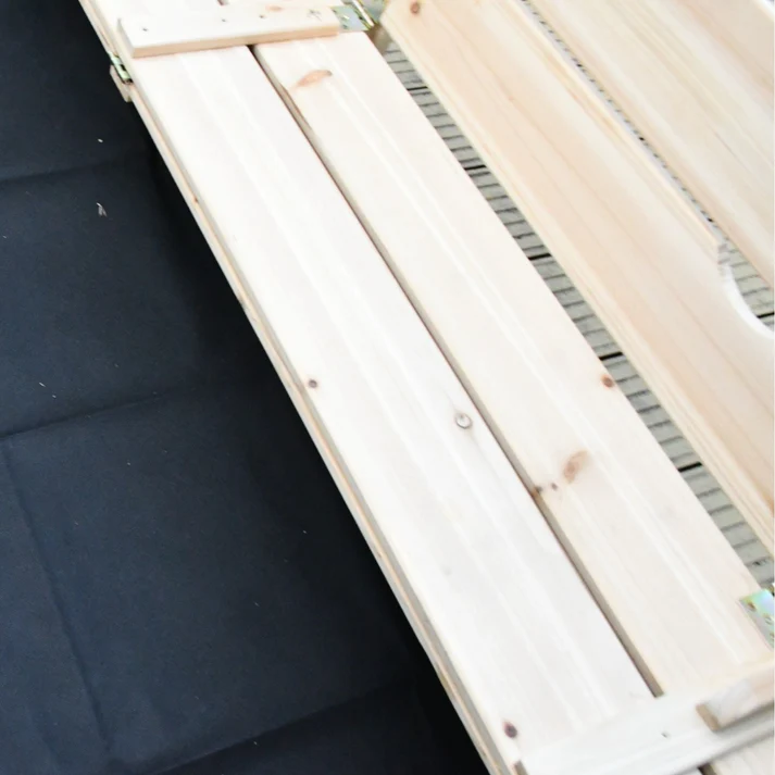 Детски пясъчник с пейки и сгъваем капак ще достави истинска радост на вашите любими деца. Този  пясъчник ще бъде идеалното допълнение към вашата градина, тъй като ще насърчи децата ви да играят навън. Детски пясъчник с пейки и сгъваем капак се сглобява лесно с включените монтажни материали. Сгъваемият капак се превръща в удобни пейки, където децата могат да седят по време на игра, без да се изцапат. Изработен от масивна борова дървесина, пясъчникът е устойчив на интензивна употреба и напълно безопасен за малките. Капакът предпазва пясъка от замърсяване, а включената текстилна подложка изолира пясъка от почвата, предотвратявайки смесване с трева и мръсотия. Комплектът включва елементи за сглобяване на пясъчника, текстилна подложка – 1.6×1.6 м за изолация. Детския дървен пясъчник е отличен подарък както за момче, така и за момиче. Този голям детски пясъчник  GINGER HOME е перфектното допълнение към всеки двор. Изработен от дървен материал с текстилна подложка, той гарантира часове безопасно забавление за вашите деца. Изберете качествен пясъчник от масивна борова дървесина – функционален, здрав и екологичен! Тестван за безопасност, здравина и стабилност детския пясъчник от дърво отговаря на всички европейски стандарти.