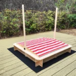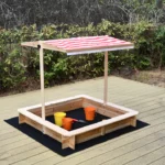 Детски пясъчник с регулируем водоустойчив сенник ще достави истинска радост на вашите любими деца. Този пясъчник ще бъде идеалното допълнение към вашата градина, тъй като ще насърчи децата ви да играят навън. Детски пясъчник с регулируем водоустойчив сенник се сглобява лесно с включените монтажни материали. Специално изработеният навес на пясъчника е устойчив на ултравиолетови лъчи, вода и атмосферни влияния. Може да се регулира на всякаква височина и ъгъл, служи също като покривало на пясъчника. Предпазва от нежелано намокряне и замърсяване. Улеснява охлаждането на пясъчника и се спуска на височина, за да създаде по-защитено пространство отдолу. Защитете децата си, докато играят в този детски пясъчник с удобен дизайн в бяло и червено. Осигурява надеждна сянка и предпазва децата от вредните UV лъчи. Покривът е лесно регулируем и може да се свали, служейки като капак за защита на пясъка. Ъглите на пясъчника са снабдени със специални пластмасови протектори за пълна безопасност на вашите деца. Детския дървен пясъчник е отличен подарък както за момче, така и за момиче. Тестван за безопасност, здравина и стабилност детския пясъчник от дърво отговаря на всички европейски стандарти.