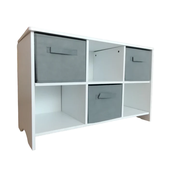 Дървен Скрин с 6 Текстилни Чекмеджета за Съхранение – WHITE/GREY е Лесен за монтаж и демонтаж.