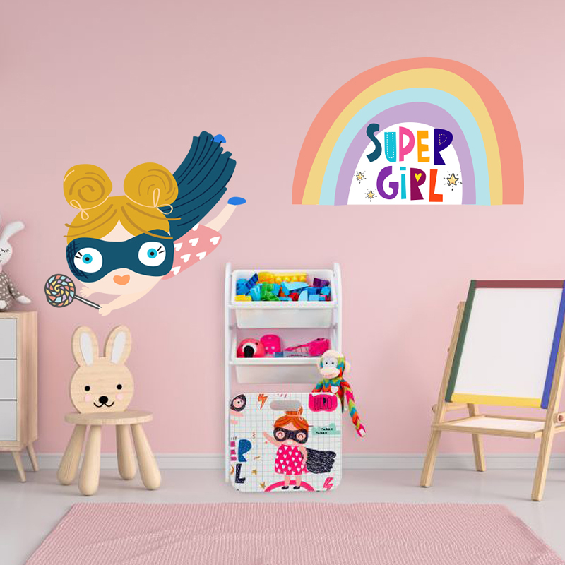 Комплект 2 броя стикери SUPER GIRL за декорация на детска стая / стена / прозорец / мебели. Изработени от висококачествено немско фолио, стикерите са подходящи за всякакъв вид гладки повърхности. Лесни за поставяне и отстраняване, не увреждат повърхностите. Цветни и забавни стикери внасящи настроение и уют в детската стая. Прекрасен завършек за Вашата красива детска стая! Може да се залепват върху всякакви чисти, сухи, гладки повърхности без текстура: стени, прозорци, врати, плочки, мебели, огледала. Комплект 2 броя стикери SUPER GIRL за декорация на детска стая / стена / прозорец / мебели са изработени с високо качество, ярки и цветни. Подвижни и водоустойчиви. Комплектът 2 броя стикери SUPER GIRL за декорация на детска стая / стена / прозорец / мебели са подходящи за детска стая, спалня за момчета, бебешка стая, хол, стая за игри, класна стая, всекидневна и др. Добавете цветове към детската стая, без да рисувате и боядисвате. Тези креативни стикери за стена със забавни мотиви в синьо и жълто са идеално решение да освежите стаята на детето си ,без да е необходимо времеемко и скъпо предекориране. Чудесен подарък както за момче, така и за момиче. Безопасност: Изработени от екологично чист винил, мастила и лепило, подвижен самозалепващ се pvc материал, нетоксичен и без мирис, предпазва децата ви от химикали.
